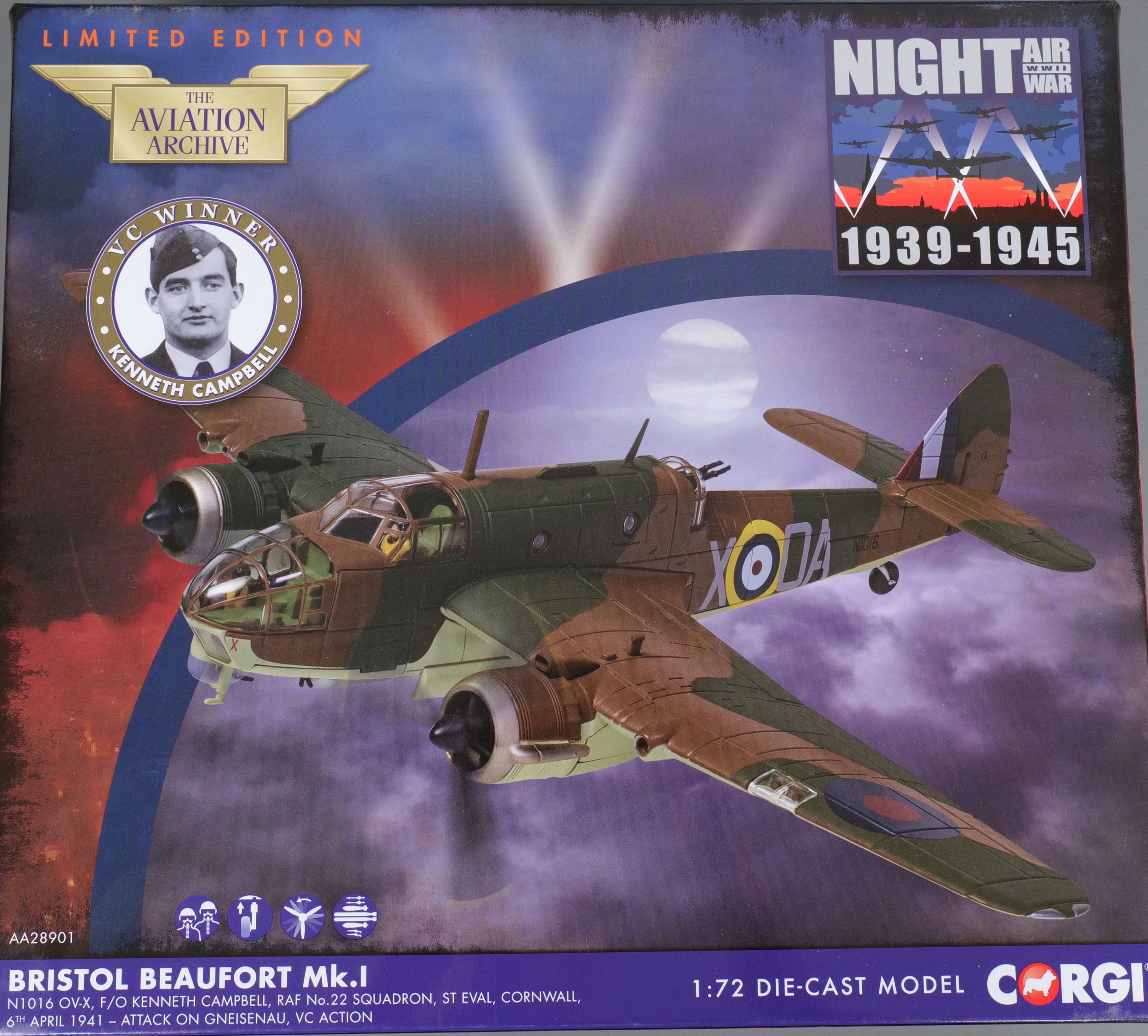 AA28901 Bristol Beaufort I, N1016, No. 22 Squadron, RAF St. Eval, Kenneth Campbell VC aircraft,1941